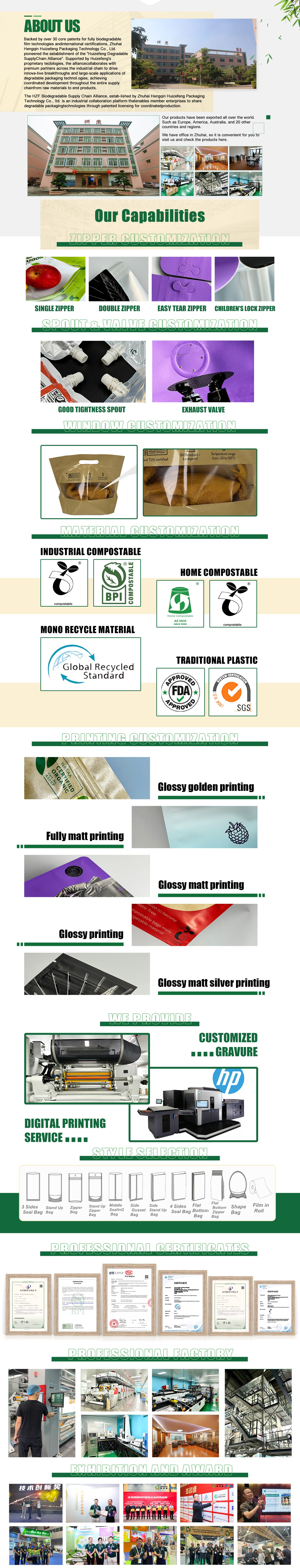 Alta para barrera Totalmente biodegradable Compostable Vacío Fruta fresca Bolsa de salchicha para gelatina de leche Goma de mascar Almacenamiento de alimentos enlatados
