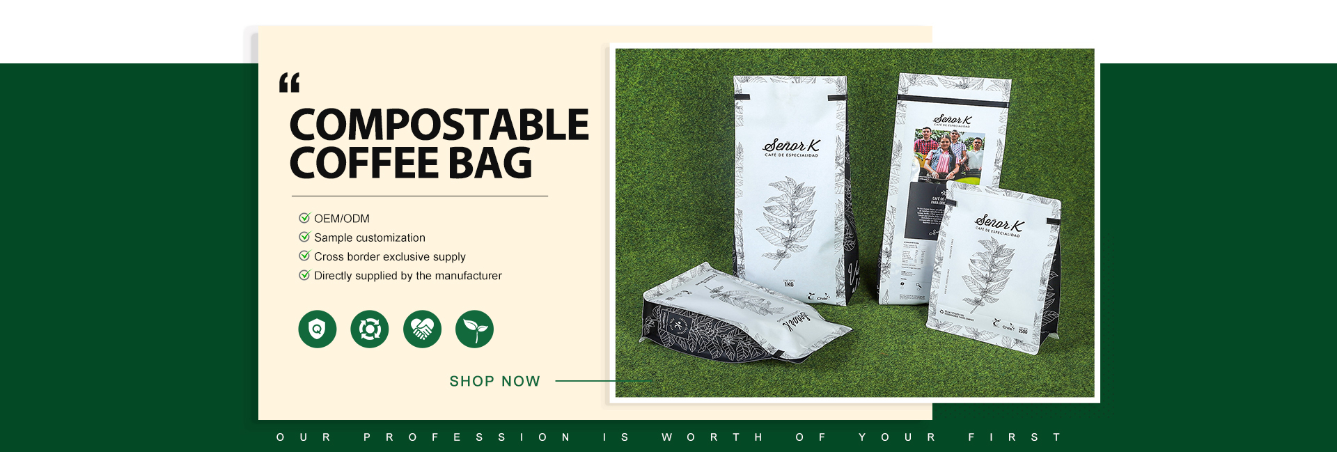 Personalizado 100% Biodegradable Compostable Grado Alimenticio Café Té Kraft Bolsa con cremallera Ziplock Stand Up Paper Square Bottom Pouch
